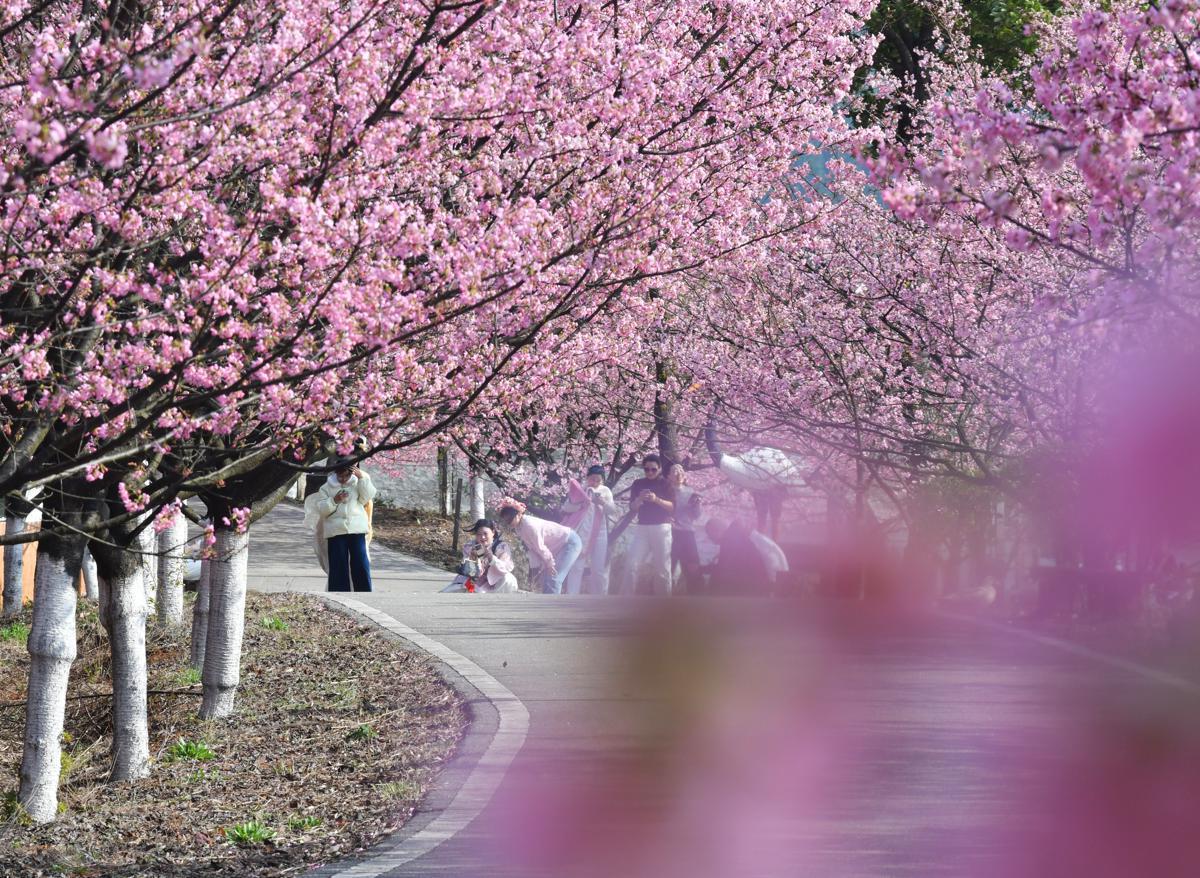 Tourists flock to Hunan city for cherry blossom delight