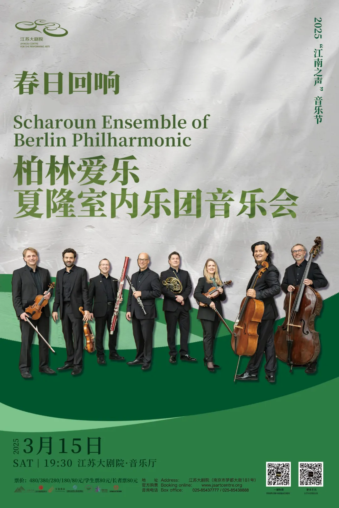 The Scharoun Ensemble of the Berlin Philharmonic will perform at the Jiangsu Grand Theatre for the first time on March 15! The program features Mozart’s Horn Concerto in E-flat major, K.447, Dvořák’s Czech Suite, Op.39, and Beethoven’s Septet in E-flat Major, Op. 20—a chamber music masterpiece. Don’t miss this unforgettable evening of exquisite music!