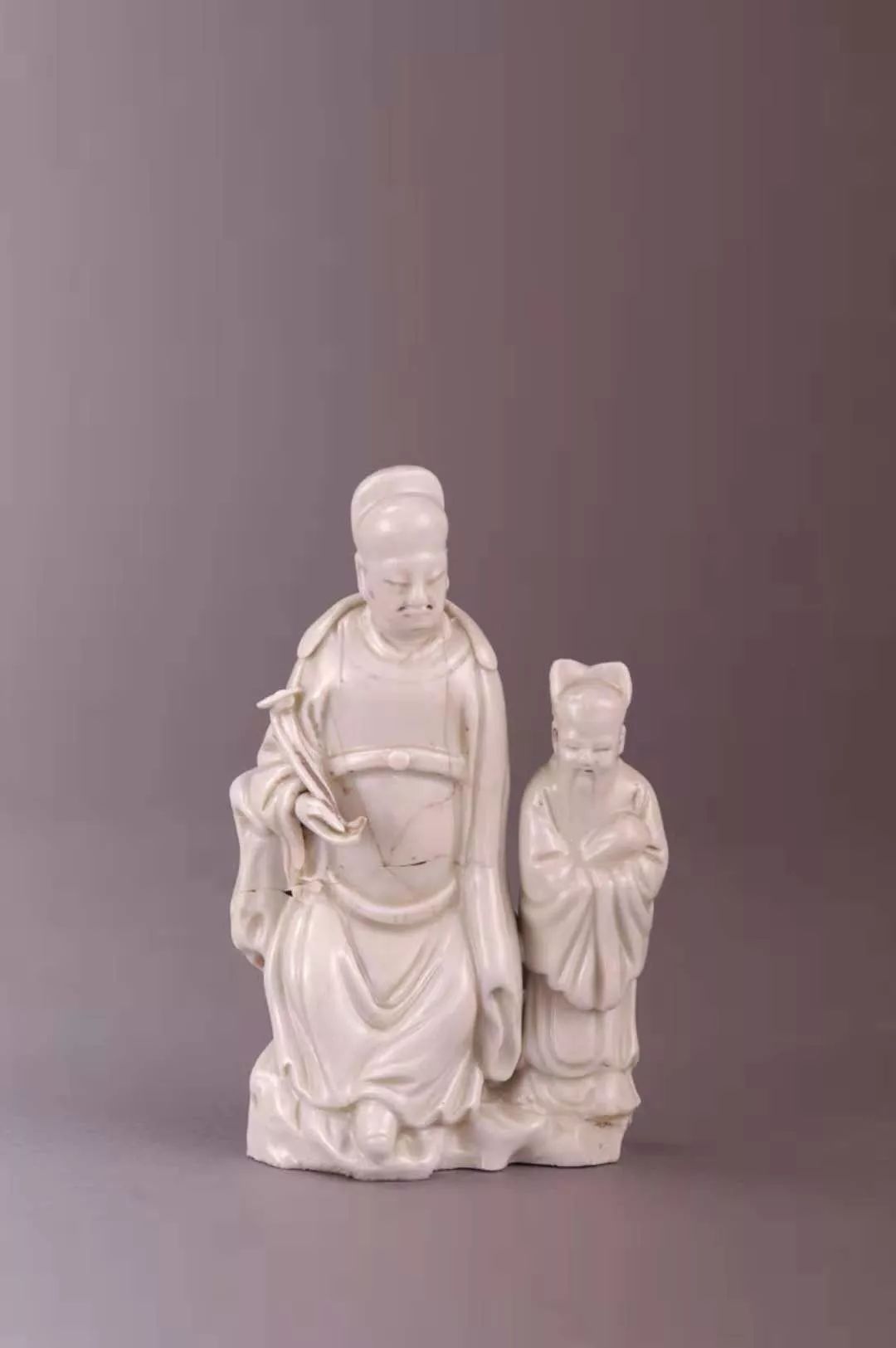 White-glazed statues of Lord Wenchang and his servant, discovered in the stupa [Photo/Official WeChat account of Lanzhou Museum]