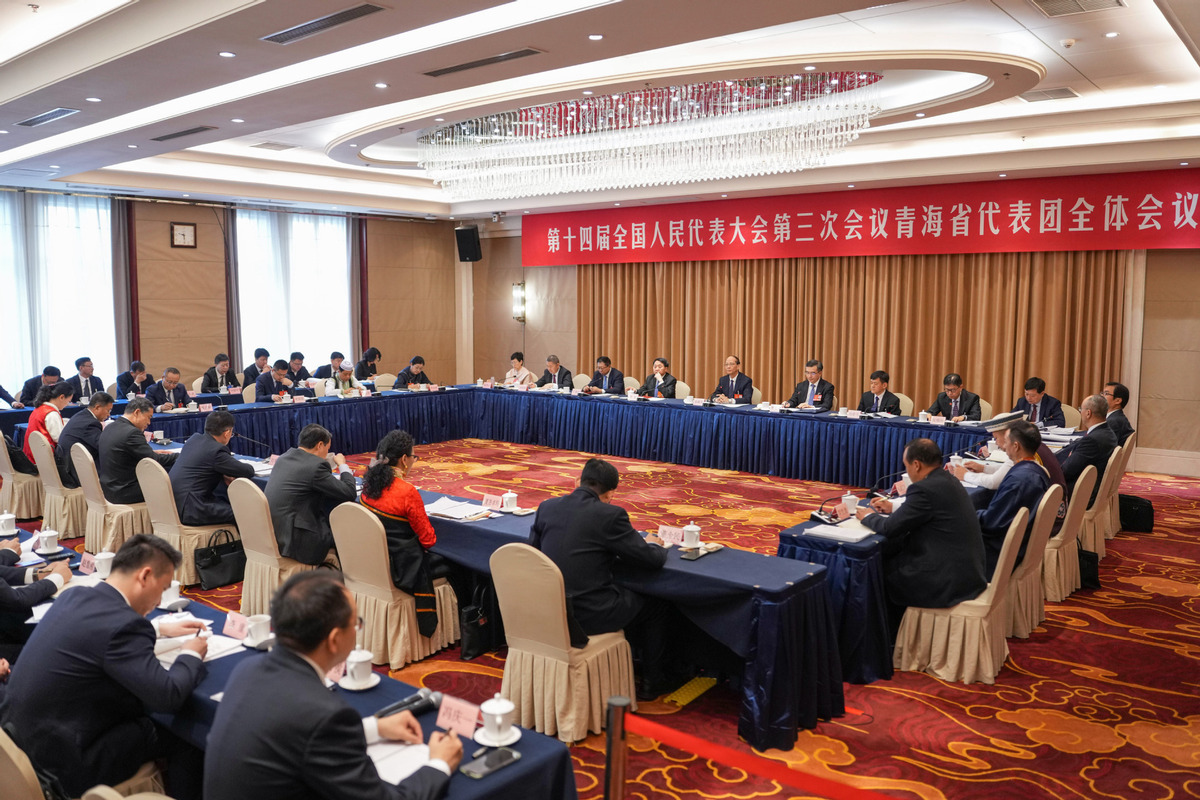 A group meeting of deputies from the delegation of Qinghai province is held at the third session of the 14th National People's Congress in Beijing, March 6, 2025. [Photo/Xinhua]
