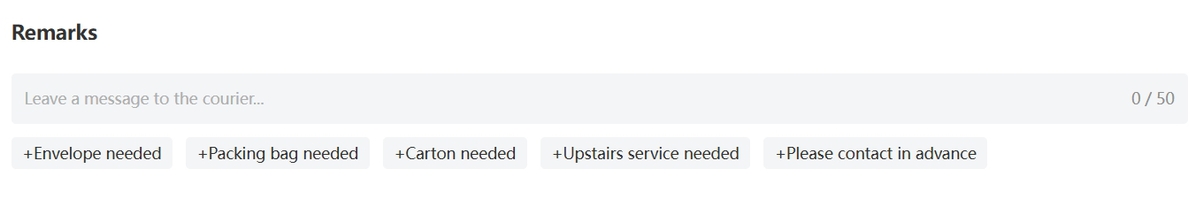 Step 7: Leave a message to the courier if you require shipping supplies or other services.