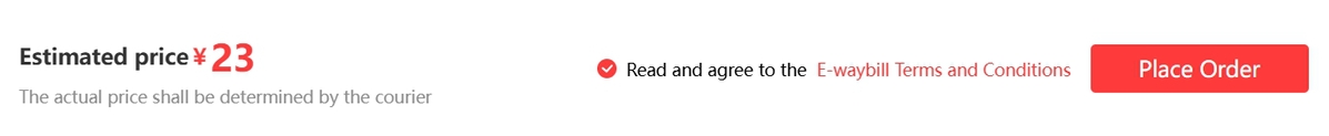 Step 8: Check estimated price, agree to E-waybill and conditions by checking the radio button, and click Place Order to confirm.