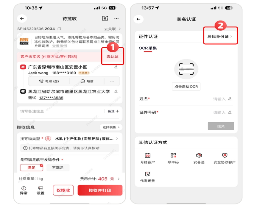 Step 9: Real-name verification of the sender will be completed in person when the courier picks up the package.