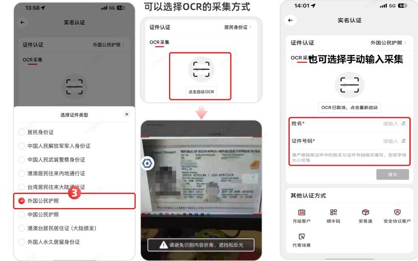 The courier will choose "Foreigner's Passport" or "Foreign Permanent Resident ID Card," and verify by scanning or manually inputting the information on your ID.