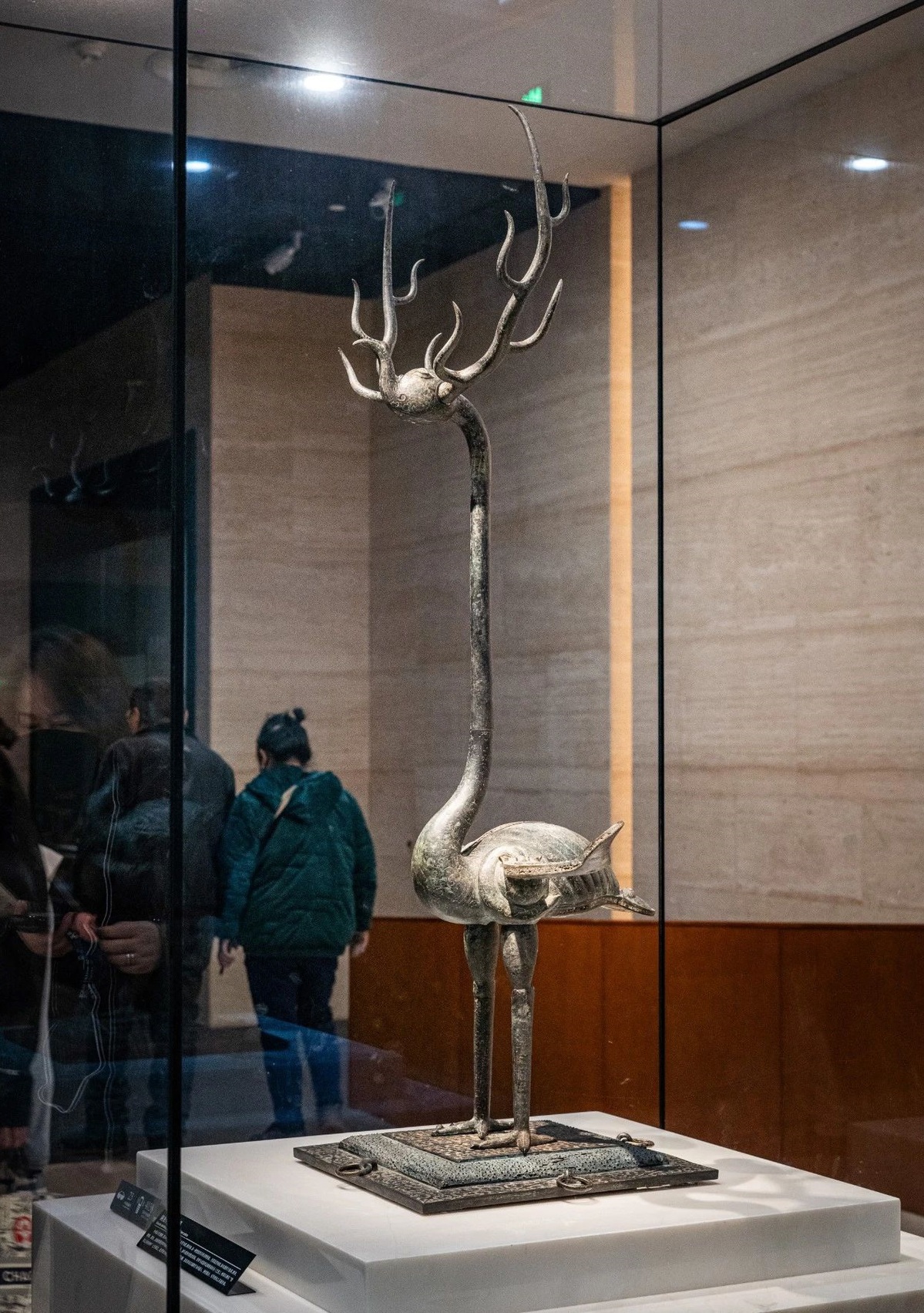 The bronze crane with deer antlers embodies the romantic and imaginative spirit of the Chu people. [Photo/Official WeChat account of Hubei Provincial Museum]
