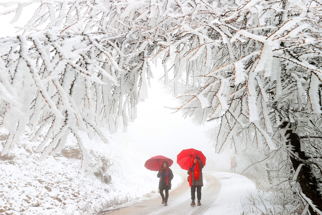 On Feb 21, the stunning rime scenery in Huiqianliangzi scenic area (1,800m altitude) transformed Qianjiang National Forest Park in Southwest China’s Chongqing into a winter fairy tale! This was the first rime spectacle in the region since the beginning of spring, creating a breathtaking landscape that has enchanted visitors. Would you like to experience this dreamy frost-covered wonderland?