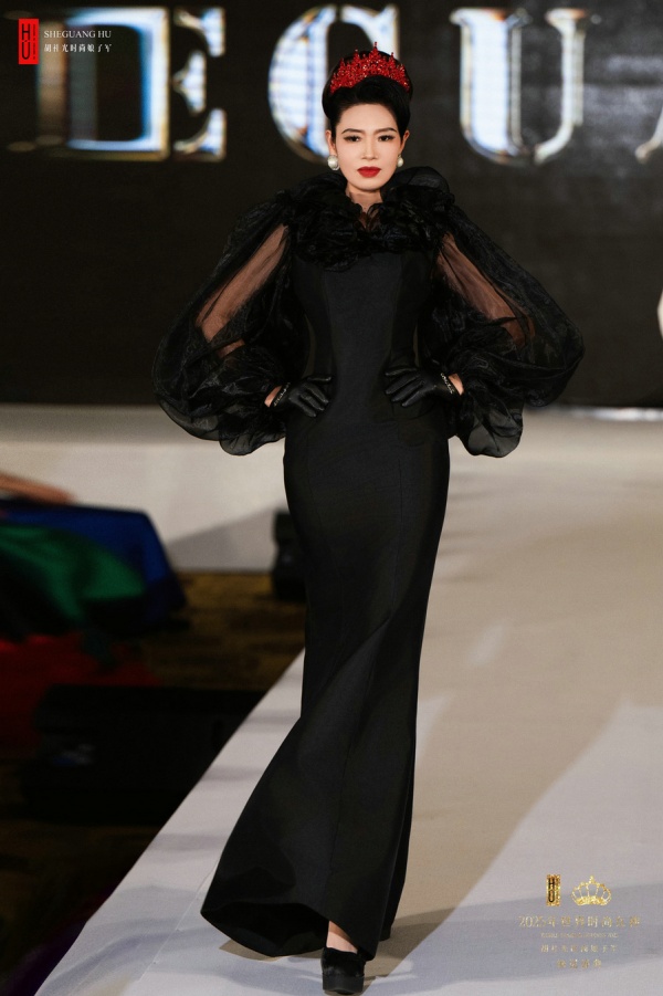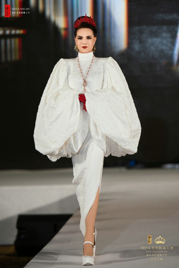 All the models strutted the catwalk in Hu's haute couture designs, sporting the red crown, a symbol of courage and wisdom. Hu presented each of them with a trophy to recognize the pursuit of their fashion dreams regardless of age.