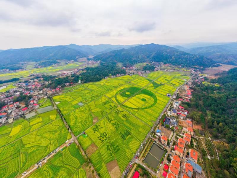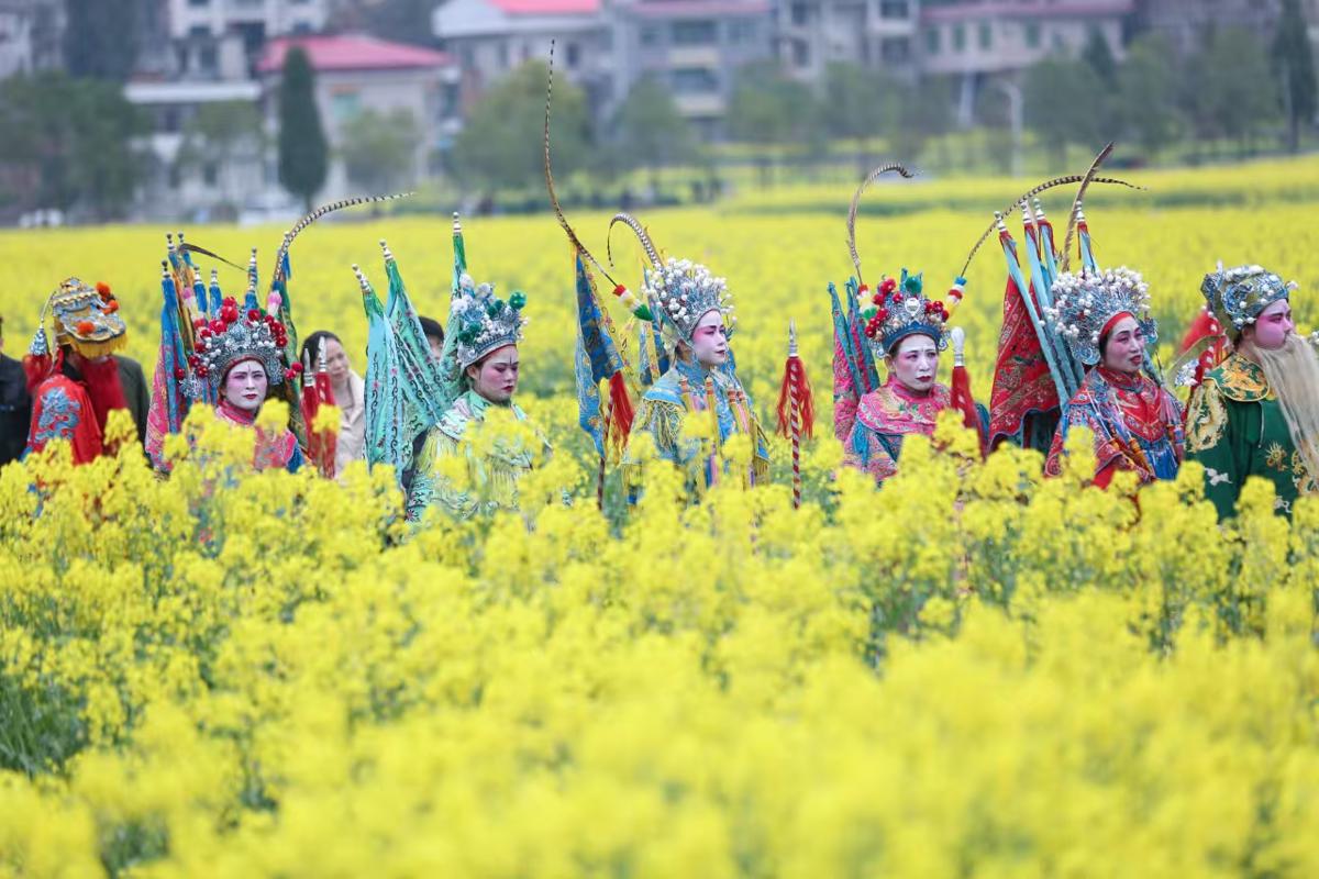 Thousands of acres of rapeseed flowers recently bloomed in vibrant splendor in Hengyang county, Hunan province, attracting nearly 10,000 visitors to the rural fields for a picturesque rendezvous with the countryside.