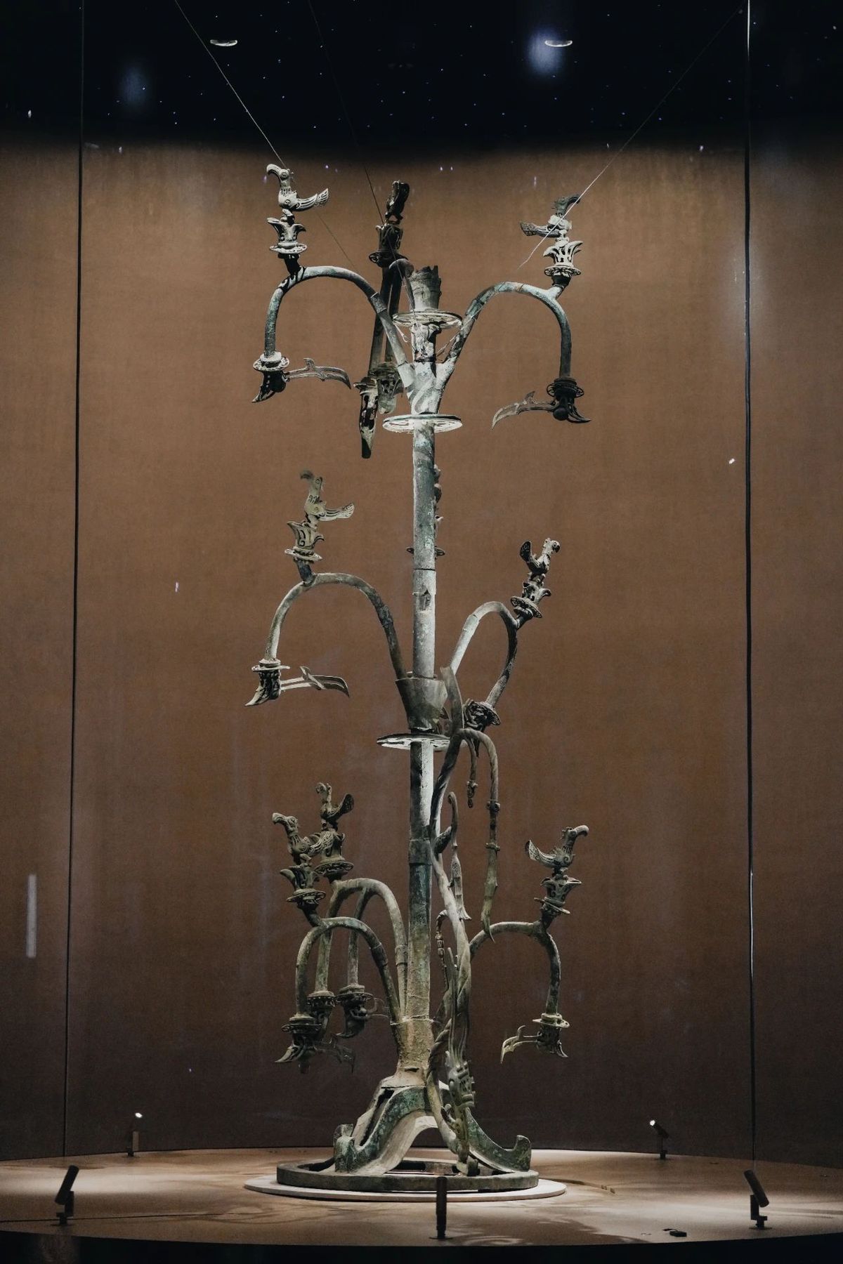 As a masterpiece of the ancient Shu civilization, the tree features a mountain-shaped base, a tall, straight trunk, and fruits and birds perching on its branches, now housed in the Sanxingdui Museum.