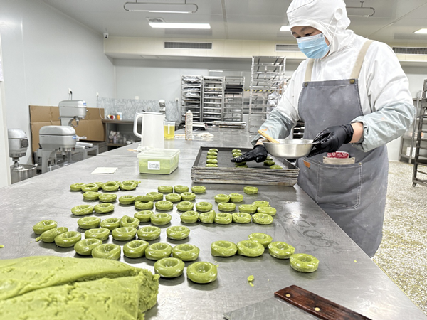 A worker uses kale to make cakes at a workshop in Gaomi, Shandong province. ZHAO RUIXUE/CHINA DAILY