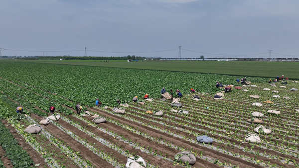 Farmers pick kale in Gaomi in May. ZHANG TAO/FOR CHINA DAILY