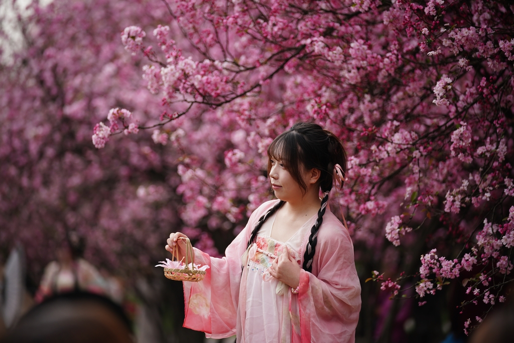 hanfu to take photos amid begonia flowers at Daguan Park in Kunming, Southwest China’s Yunnan province. [Photo/IC]