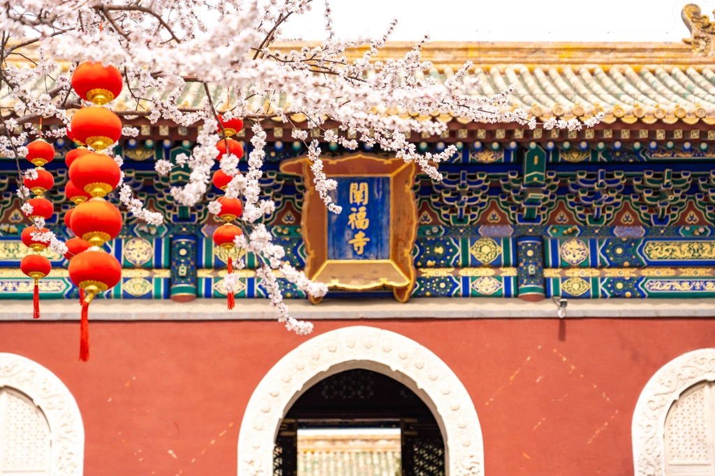 At Beijing’s Beihai Park, the mountain peach blossoms in front of Chanfu Temple are in full bloom, creating a picturesque spring scene. The delicate pink and white petals, resembling falling snowflakes, look especially stunning against the backdrop of ancient architecture and red lanterns.