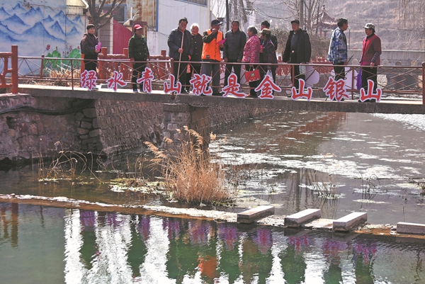 Wang Zizhong (fifth from left) promotes forest protection and fire prevention to his fellow villagers on March 10. ZHAO DONGSHAN/CHEN MING/FOR CHINA DAILY