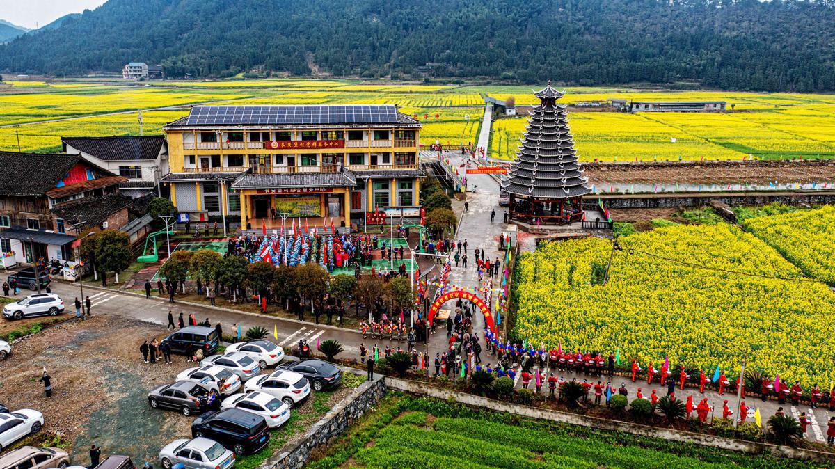 A rapeseed flower festival was held on Sunday at a village in Huaihua, Hunan province. [Photo by Wang Qiyou/For chinadaily.com.cn]