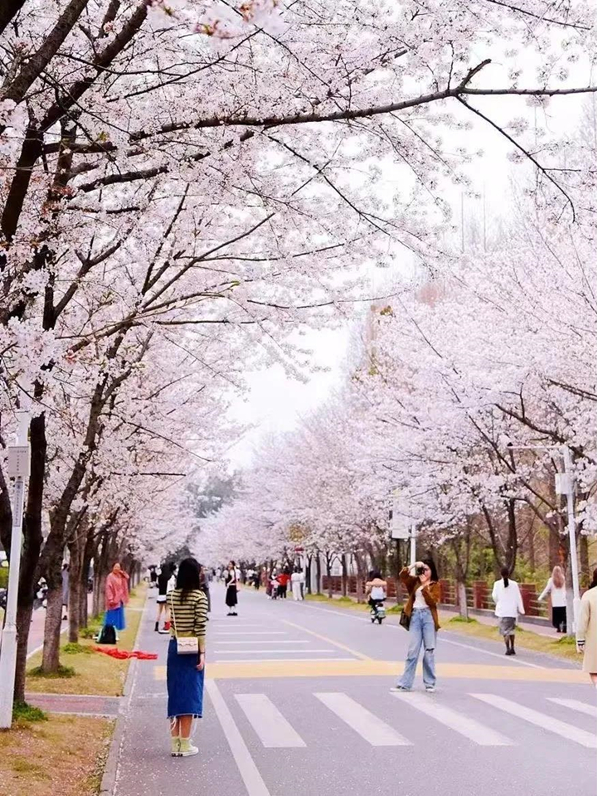 As of March 10, the bus stop has been upgraded. The extended platform now offers a more convenient and comfortable experience for flower viewing and waiting for the bus. Now passengers can enjoy the "clouds of cherry blossoms" overhead.