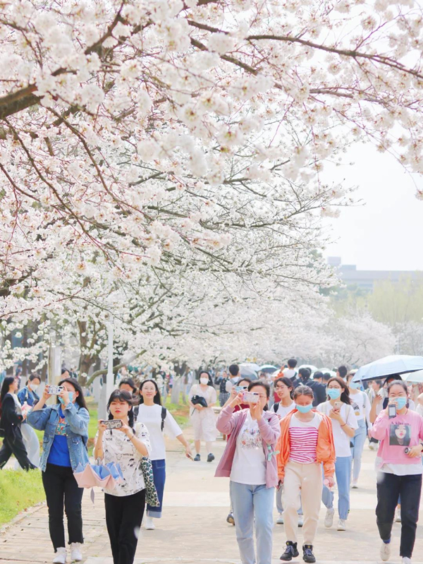 Cherry blossoms bloom in the East and West campuses of Huazhong University of Science and Technology from mid-March to early April. Visitors can scan a QR code at the gate to make a reservation for entry.