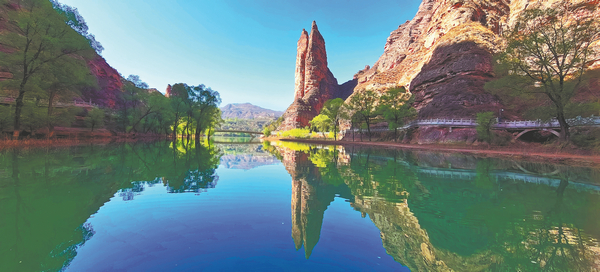 The recommended way to reach the temple is to take a shuttle boat from one of the reservoir's piers, which allows visitors to see the natural spectacle of the clear green water of the Yellow River merging with the yellow murk of the Tao River.