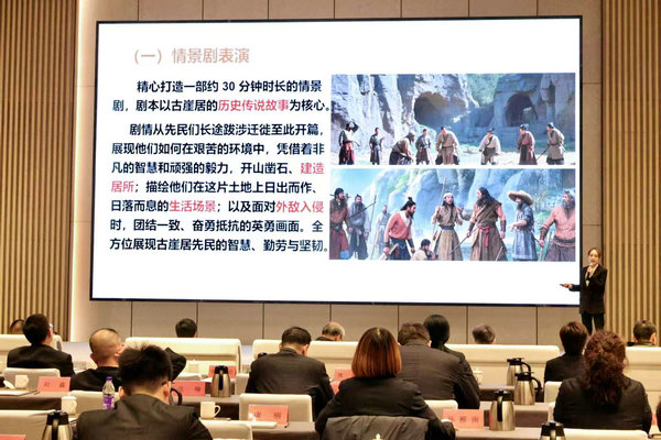 A finalist introduces a stage show design based on Great Wall history at the Badaling tourism product innovation competition on March 20. [Photo provided to chinadaily.com.cn]