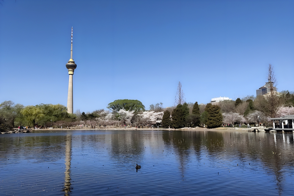 Beijing Yuyuantan Park's early cherry blossoms are blooming, creating a breathtaking scene against the blue sky. Visitors are flocking to capture the beauty!