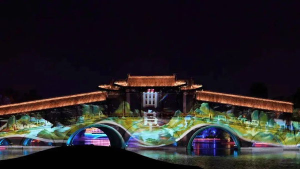 The 3D mapping show presented amid the ancient streets of the Liaohe River in Qufu, Jining. [Photo/WeChat account: jnrbwx]