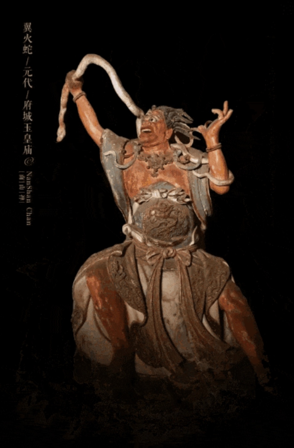 As depicted by the Yuan Dynasty (1271-1368) painted sculpture from Jincheng Yuhuang Temple Painted Sculpture and Mural Museum in Shanxi, the mansion is associated with fire and snakes. This fascinating figure reflects the combination of Chinese mythology and astronomy and stems from people's reverence for the stars and the natural world.