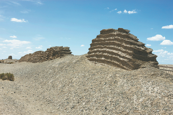 Located 160 km southeast of Yumen Pass, Jiayu Pass marks the western end of the Ming Great Wall. Nearly 80 percent of the existing structures, covering more than 33,500 square meters, date back to the Ming Dynasty. These include imposing tower buildings and large stone slabs with deep grooves left by passing carriages.