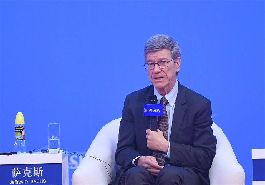 Jeffrey D Sachs, professor of Columbia University, speaks at a high-level dialogue themed on "Building Trust in the Shifting Global Landscape" during the Boao Forum for Asia (BFA) Annual Conference 2025 in Boao, South China's Hainan province, March 26, 2025. [Photo/Xinhua]