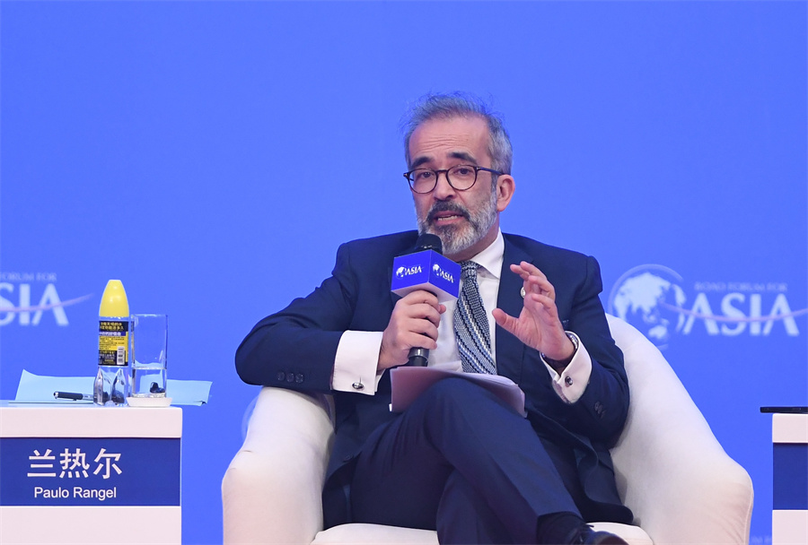 Portugal's Minister of State and Foreign Affairs Paulo Rangel speaks at a high-level dialogue themed on "Building Trust in the Shifting Global Landscape" during the Boao Forum for Asia Annual Conference 2025 in Boao, South China's Hainan province, March 26, 2025. [Photo/Xinhua]