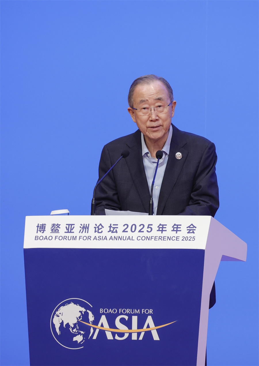 Ban Ki-moon, chairman of Boao Forum for Asia (BFA) and former secretary-general of the United Nations, speaks at a high-level dialogue themed on "Global Governance after the UN Summit of the Future" during the Boao Forum for Asia (BFA) Annual Conference 2025 in Boao, South China's Hainan province, March 26, 2025. [Photo/Xinhua]