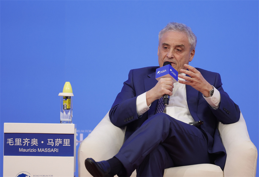 Maurizio Massari, permanent representative of Italy to the United Nations, speaks at a high-level dialogue themed on "Global Governance after the UN Summit of the Future" during the Boao Forum for Asia (BFA) Annual Conference 2025 in Boao, South China's Hainan province, March 26, 2025. [Photo/Xinhua]