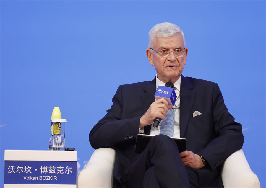 Volkan Bozkir, president of the 75th session of the United Nations General Assembly, speaks at a high-level dialogue themed on "Global Governance after the UN Summit of the Future" during the Boao Forum for Asia (BFA) Annual Conference 2025 in Boao, South China's Hainan province, March 26, 2025. [Photo/Xinhua]