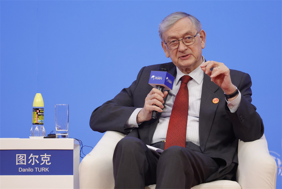 Danilo Turk, former Slovenian president and president of the World Leadership Alliance Club de Madrid, speaks at a high-level dialogue themed on "Global Governance after the UN Summit of the Future" during the Boao Forum for Asia (BFA) Annual Conference 2025 in Boao, South China's Hainan province, March 26, 2025. [Photo/Xinhua]