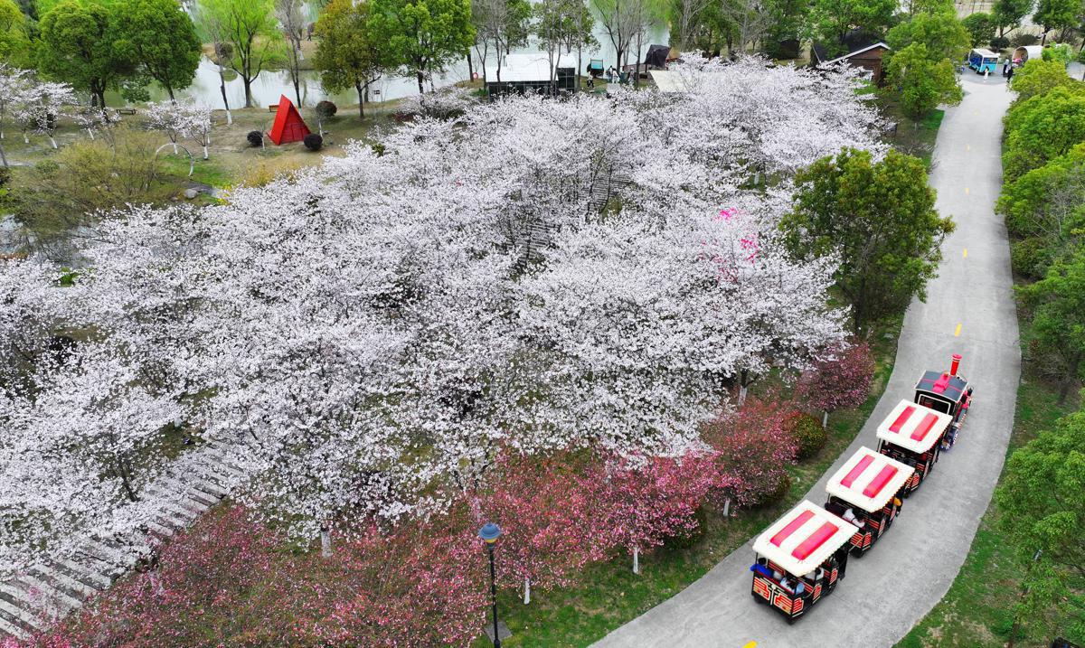 In the Haitang Huahai scenic spot of Hefei, Anhui province, cherry blossoms and begonias entered full bloom in the past week, attracting numerous visitors. [Photo by Zhang Min/For chinadaily.com.cn]