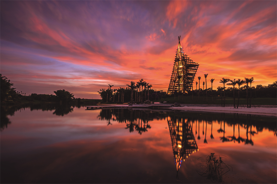 The photo captures the sunset glow at Qingquan Pavilion in Nanning Garden Expo Park, Guangxi Zhuang autonomous region. [Photo by Hu Weimin/For chinadaily.com.cn]