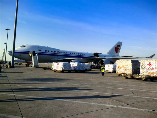 The shipment, on a chartered flight, includes 1,200 tents, 8,000 blankets and more than 40,000 first-aid kits. Director-General of the First Department of Regional Affairs of the China International Development Cooperation Agency Shou Hailong oversaw the delivery at the airport.