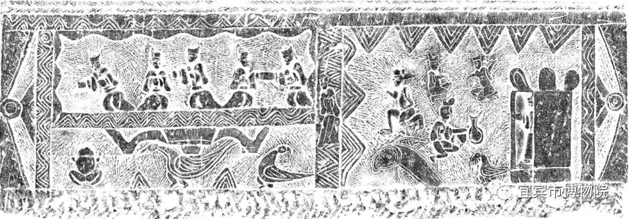 Rubbing of the wrestling match and board games on the sarcophagus [Photo/Yibin Museum official WeChat account]