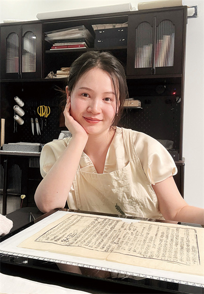 Li Yangyang has built a career for herself in ancient book restoration.[Photo provided to China Daily]