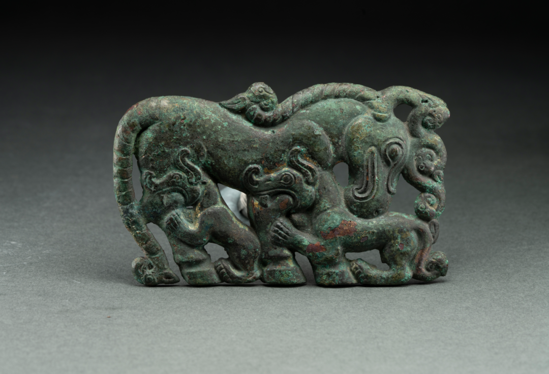 Bronze plaque with biting beast motifs, Warring States Period [Photo/Shandong Museum official WeChat account]