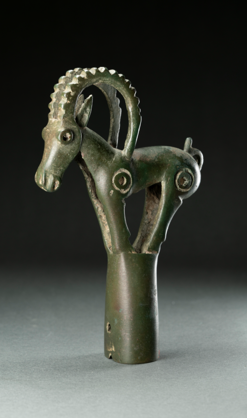 Goat-shaped bronze pole finial, Warring States Period (475-221 BC) [Photo/Shandong Museum official WeChat account]