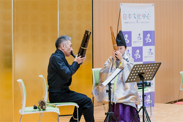 On March 29, Chinese sheng player Wu Tong shared the stage with Japanese sho player Mayumi Miyata at the Japanese embassy in Beijing, giving the audience an enjoyable experience with ancient musical instruments.
