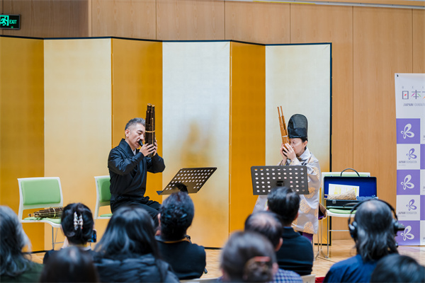 Chinese sheng player Wu Tong and Japanese sho player Mayumi Miyata perform in Beijing on March 29. [Photo provided to chinadaily.com.cn]