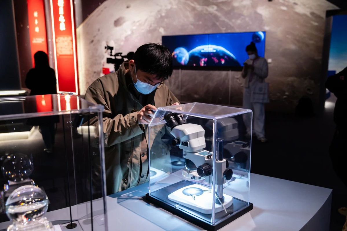 The samples from both the near side and far side of the Moon are showcased side by side for the first time. [Photo/National Museum of China official WeChat account]