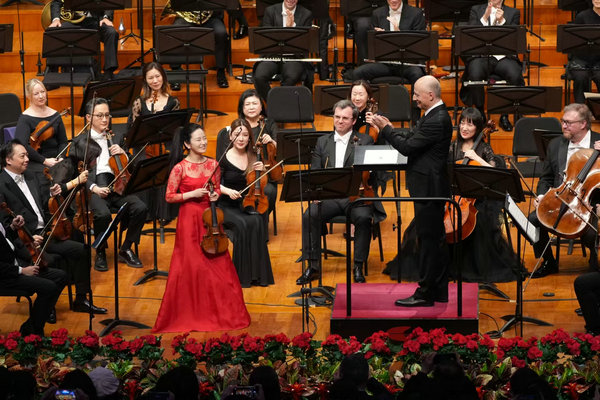 Award-winning violinist Bomsori Kim performed with conductor Paavo Jarvi on Monday. [Photo provided to chinadaily.com.cn]