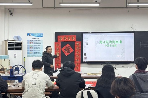 Singaporean students attend a calligraphy class at Nantong Vocational University. [Photo/chinadaily.com.cn]