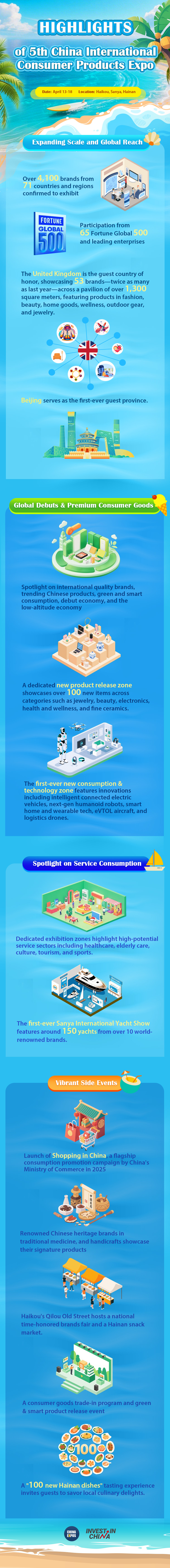 Discover the global buzz around the 5th China International Consumer Products Expo! Featuring exclusive global premiers, premium consumer goods, dazzling yacht shows and tasty Hainan snacks, this year's expo is packed with surprises! Dive into the highlights below!