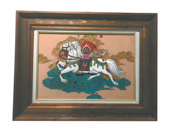 A leather-carved painting with a Wind Horse pattern, an ethnic Mongolian cultural symbol. CHINA DAILY