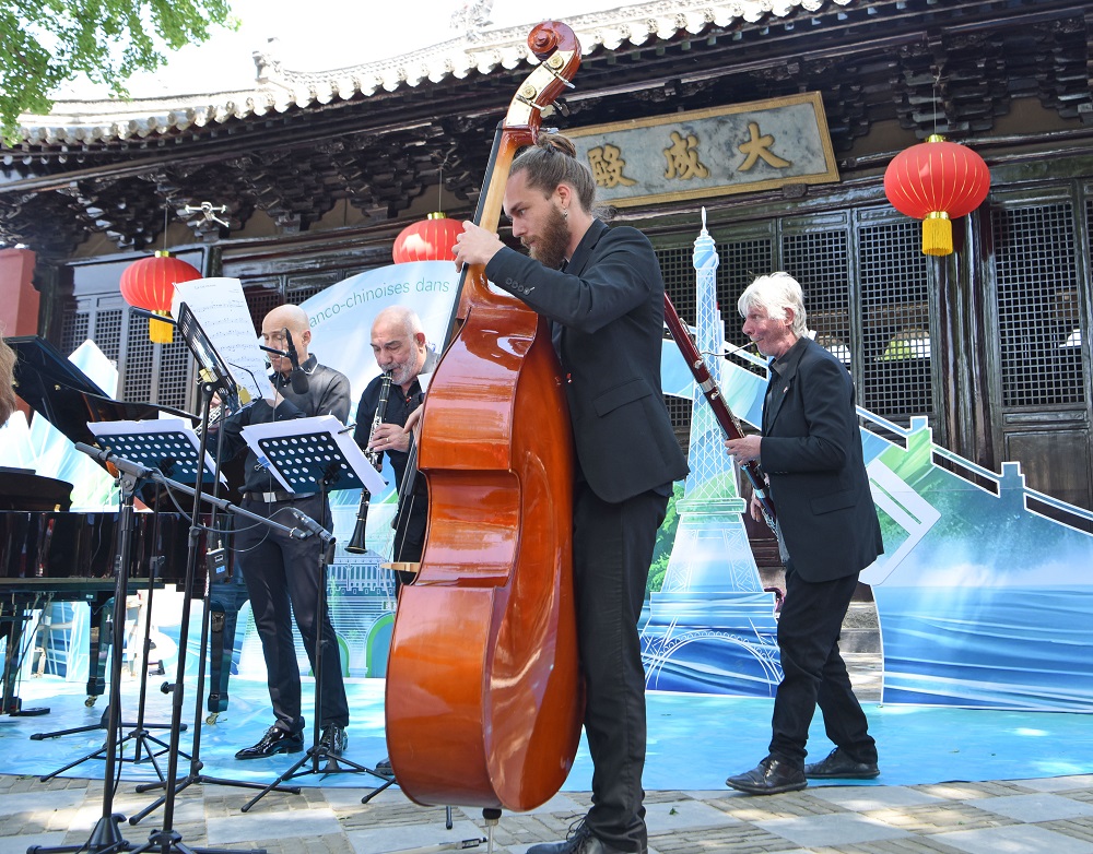 Musicians from France’s Ensemble Instrumental Provence Verdon shares the stage with Chinese folk and heritage artists in Shouxian county, Anhui province, on Monday. [Photos/IC]