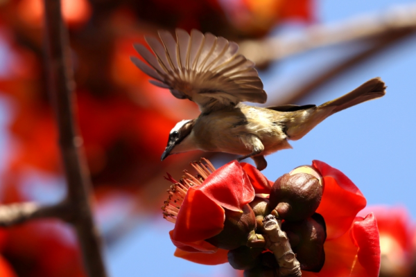 In recent days, the kapok trees across Xiamen, Fujian province, have entered their blooming season, forming a vibrant spring scene. [Photo by Chen Bo/chinadaily.com.cn]