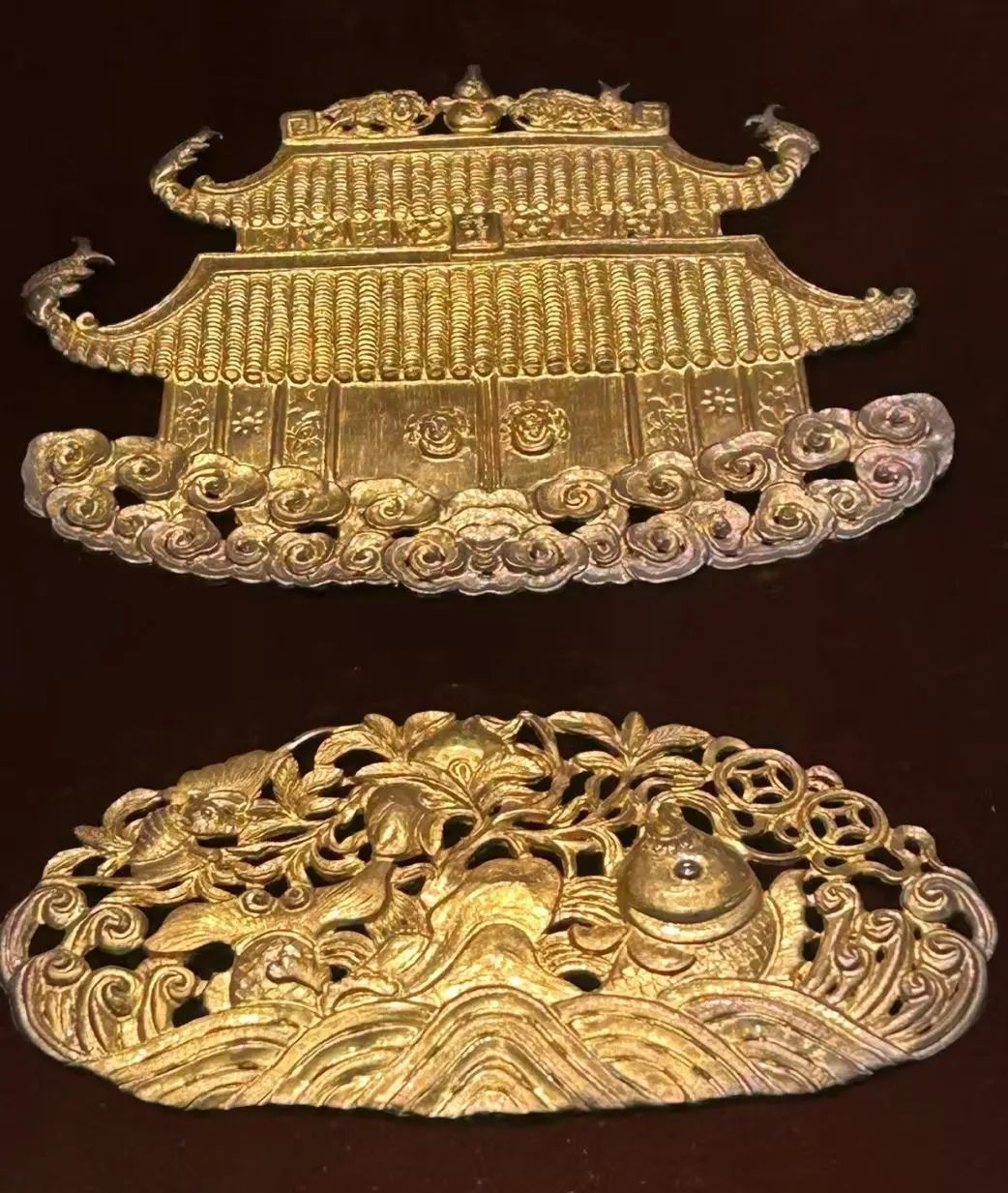 Gilded silver ornaments in the design of a carp leaping over Dragon Gate, Qing Dynasty, from the collection of Changshu Museum [Photo/Yangzhou Museum official WeChat account]